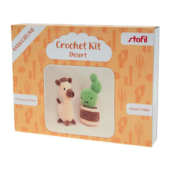 Het Haakpakket Amigurumi Velvie Desert van Stafil is een compleet DIY-pakket met chenille garen en instructies om 2 zachte knuffels te haken. Perfect als cadeau of creatief project.