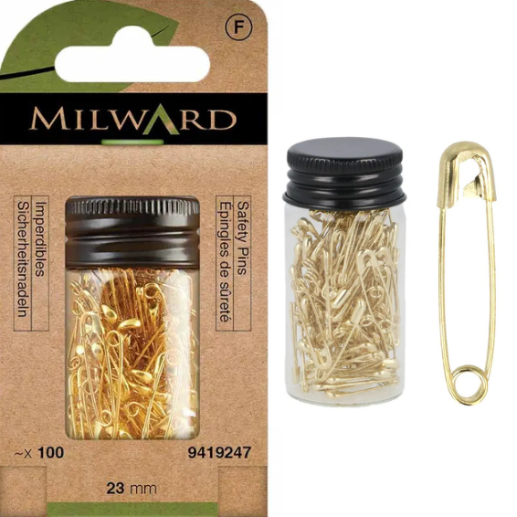 Deze Milward goudkleurige veiligheidsspelden combineren functionaliteit, elegantie en duurzaamheid in één compact kokertje. Met een lengte van 23 mm zijn deze spelden ideaal voor talloze toepassingen in handwerk, mode en dagelijks gebruik.